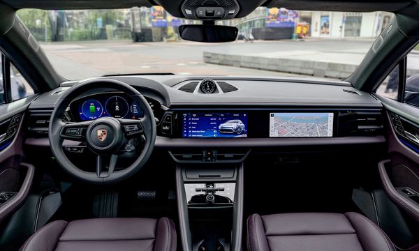 Khoang lái Macan 4 mang ngôn ngữ thiết kế tương tự người anh em chạy điện Taycan, thể hiện rõ phong cách tối giản nhưng đầy công nghệ. Điểm nhấn nằm ở táp-lô, nơi có ba màn hình, gồm màn hình 12,6 inch sau vô-lăng, màn hình cảm ứng giải trí 10,9 inch ở chính giữa và màn hình giải trí dành riêng cho ghế phụ kích thước 10,9 inch. Đặc biệt, ghế lái của Macan 4 thấp hơn 28 mm so với bản máy xăng, là một thay đổi đáng chú ý, giúp tạo tư thế lái thể thao.