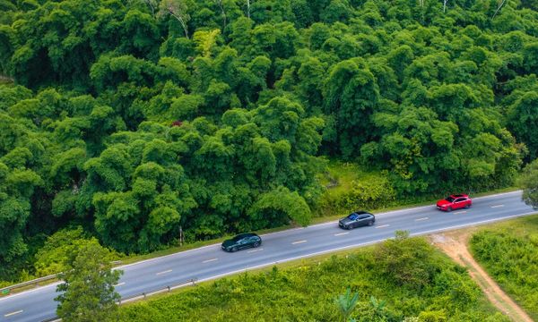 Ba chiếc Porsche lăn bánh trên đường Hồ Chí Minh, trong hành trình trải nghiệm Hà Nội - Pù Luông, Thanh Hóa. Ảnh: Trần Thắng