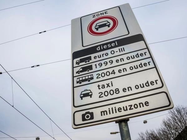 Bảng thông báo vùng phát thải thấp cấm xe diesel đời cũ tại Hà Lan. Ảnh: AD.nl