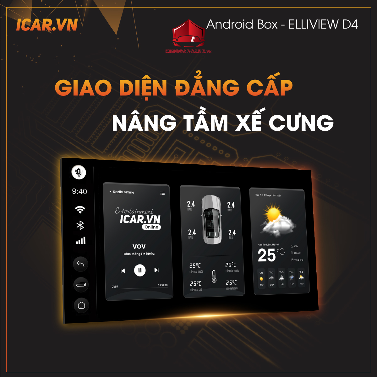 Android auto box ICAR Elliview D4 có giao diện sang trọng