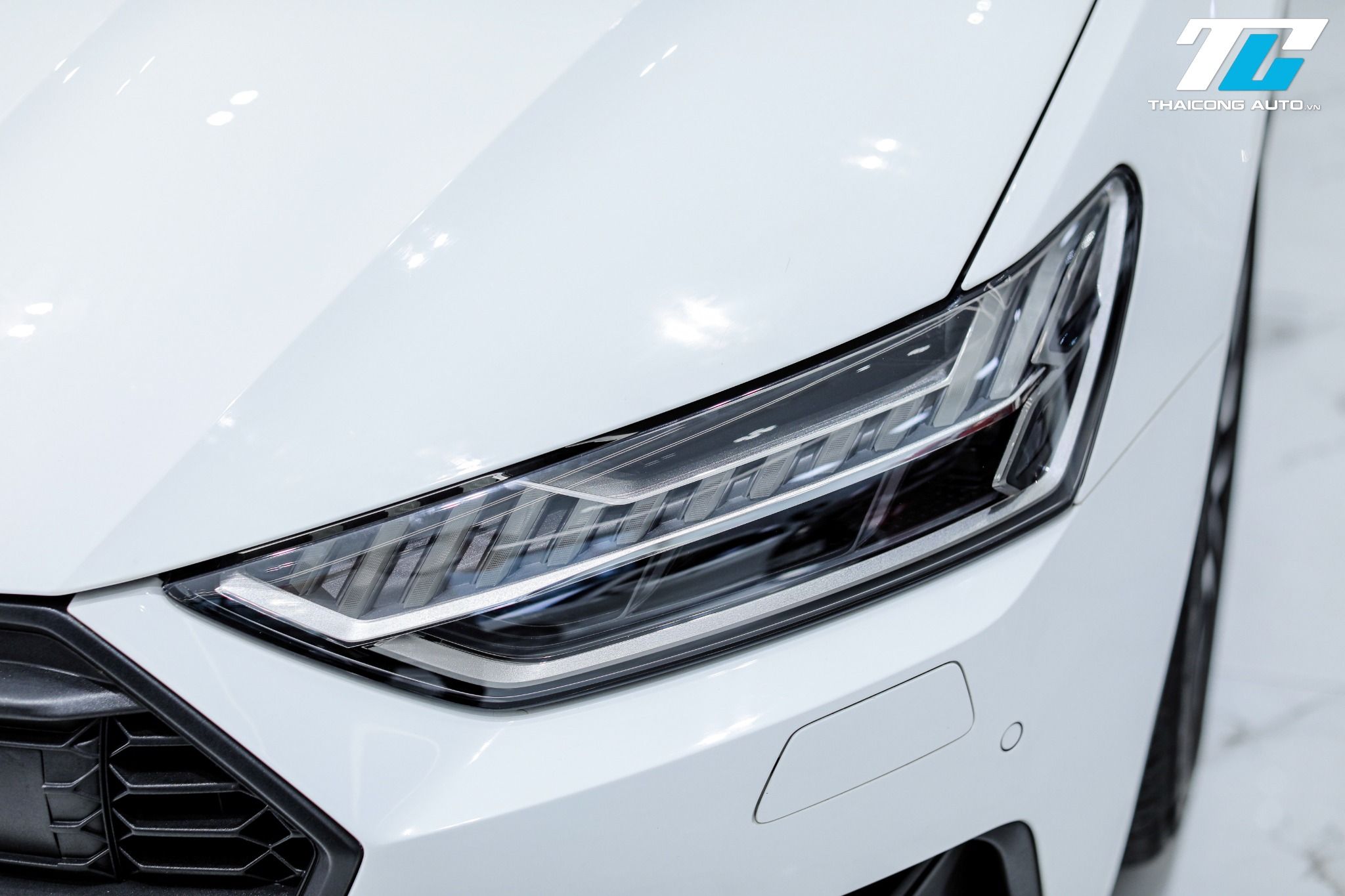 🔴 Lưới tản nhiệt Singleframe rộng đặc trưng của Audi kết hợp cùng đèn pha HD Matrix LED.