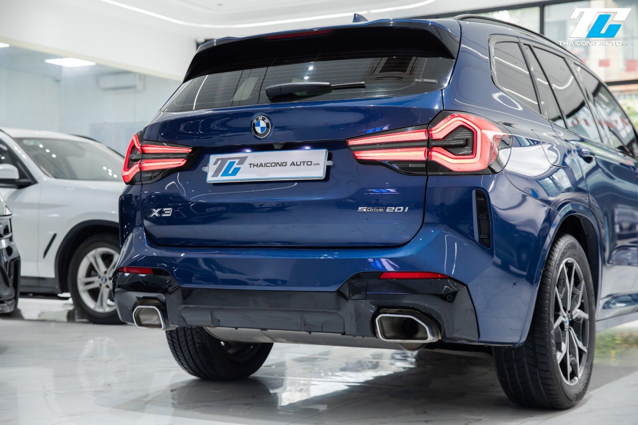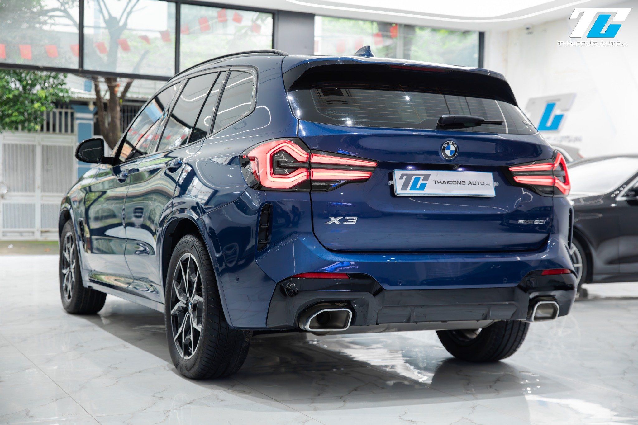 Cụm đèn hậu LED đồ họa 3D hình chữ "L" đặc trưng, tạo hiệu ứng thị giác ấn tượng và độc đáo. Cản sau M Sport tích hợp bộ khuếch tán gió và cặp ống xả kép, hoàn thiện phong cách mạnh mẽ và thể thao của chiếc xe.
