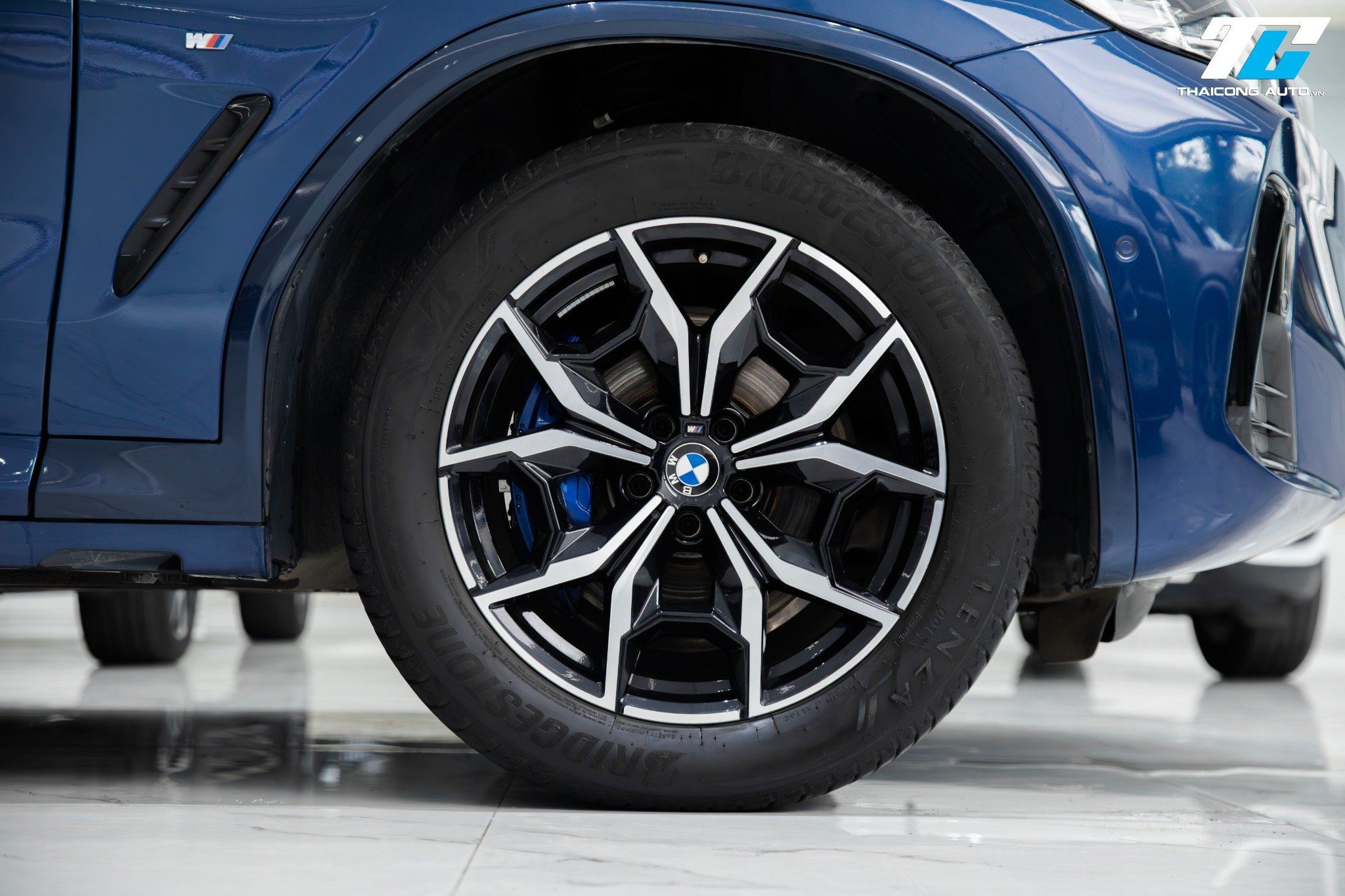 Xe được trang bị bộ mâm hợp kim M Sport 19 inch với thiết kế đa chấu không chỉ tăng tính thẩm mỹ mà còn góp phần vào sự ổn định vận hành và vẻ ngoài cá tính. Cùm phanh M Sport màu xanh nổi bật cũng là một chi tiết không thể thiếu trên bản này.
