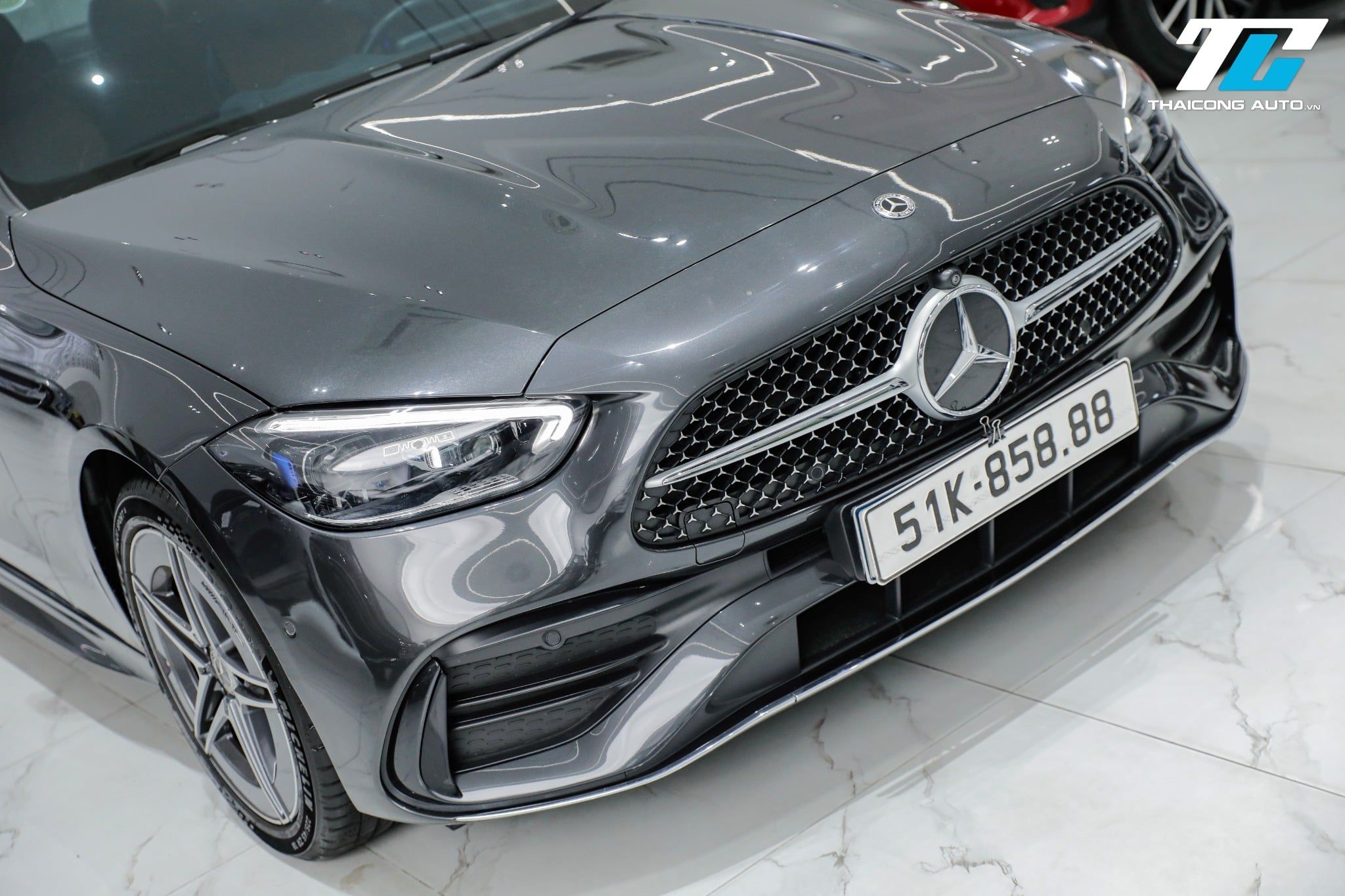 Lưới tản nhiệt ngôi sao ba cánh cỡ lớn với họa tiết kim cương, cản trước và cản sau thiết kế hầm hố, cùng bộ mâm xe hợp kim AMG đa chấu kích thước lớn tạo nên một diện mạo năng động và đầy cuốn hút.
