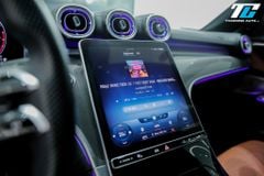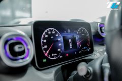 Bảng điều khiển trung tâm được thiết kế tối giản với màn hình cảm ứng trung tâm kích thước lớn đặt dọc, tích hợp hệ thống giải trí MBUX thế hệ mới nhất. Vô lăng thiết kế 3 chấu bọc da Nappa, tích hợp Touch Control thiết kế mới và lẫy chuyển số thể thao mang lại cảm giác cầm nắm thể thao và khả năng thao tác thuận tiện.
