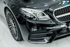 Mercedes-Benz E300 AMG 2020 gây ấn tượng mạnh mẽ với vẻ ngoài uy lực, sang trọng và đầy cuốn hút nhờ gói trang bị AMG Line đặc trưng. Phần đầu xe nổi bật với lưới tản nhiệt hình sao rơi, đi kèm logo "ngôi sao ba cánh" ở trung tâm. Cản trước thể thao AMG với các hốc hút gió lớn và chi tiết mạ chrome, tạo vẻ hầm hố và năng động. Cụm đèn pha Multibeam LED hiện đại bậc nhất, với khả năng điều chỉnh chùm sáng linh hoạt theo điều kiện giao thông, mang lại tầm nhìn tối ưu và vẻ ngoài sắc sảo.