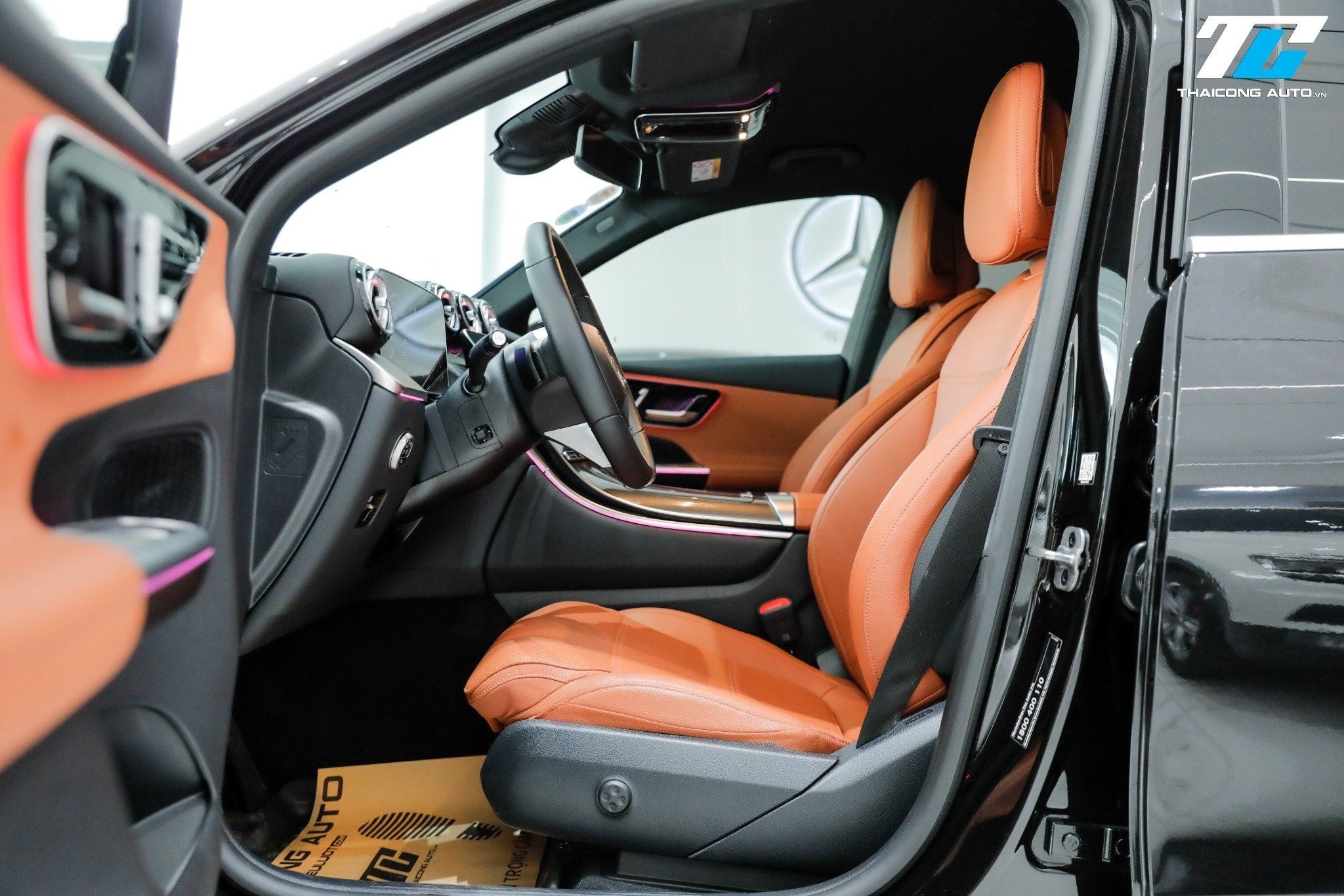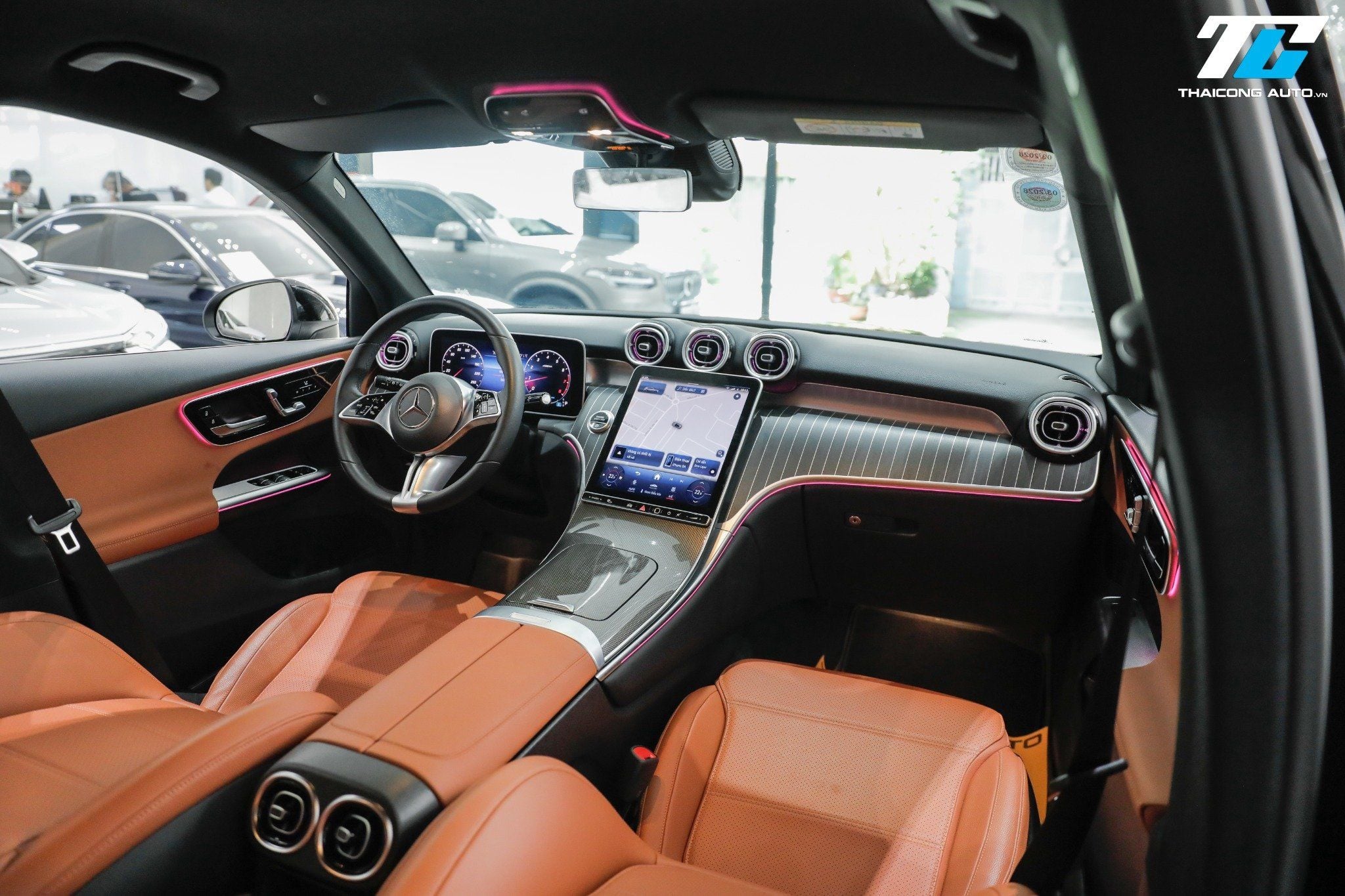 Bảng táp-lô được thiết kế hiện đại, với các vật liệu cao cấp như da Artico và các chi tiết ốp gỗ Open-Pore. Điểm nổi bật công nghệ chính là cụm màn hình kỹ thuật số kích thước lớn 12.3 inch (bảng đồng hồ) và màn hình giải trí trung tâm 11.9 inch đặt dọc, nghiêng về phía người lái. Hệ thống thông tin giải trí MBUX (Mercedes-Benz User Experience) mới nhất mang đến trải nghiệm trực quan, dễ sử dụng với khả năng điều khiển bằng cảm ứng và giọng nói ("Hey Mercedes"), hỗ trợ Apple CarPlay/Android Auto không dây.