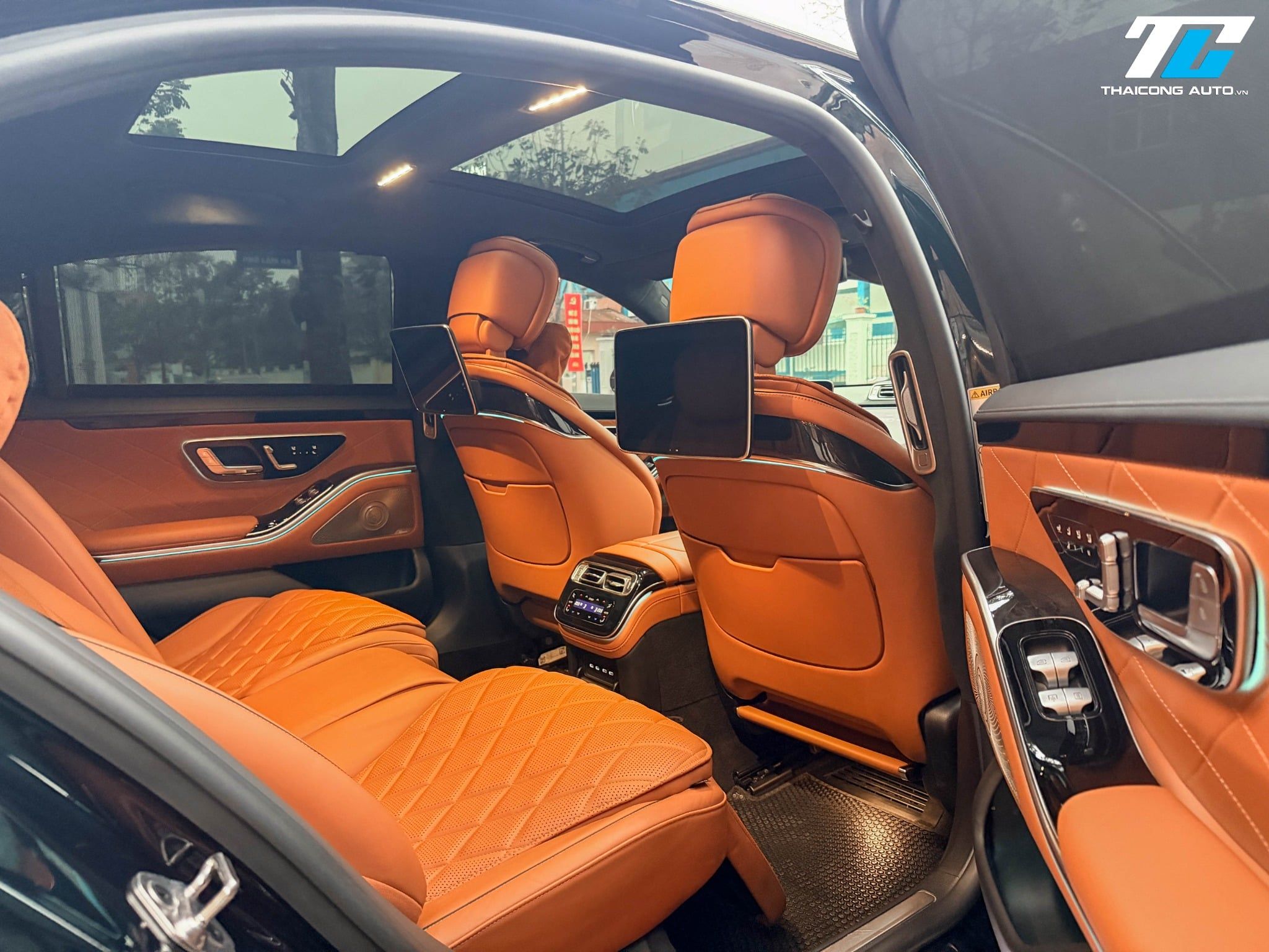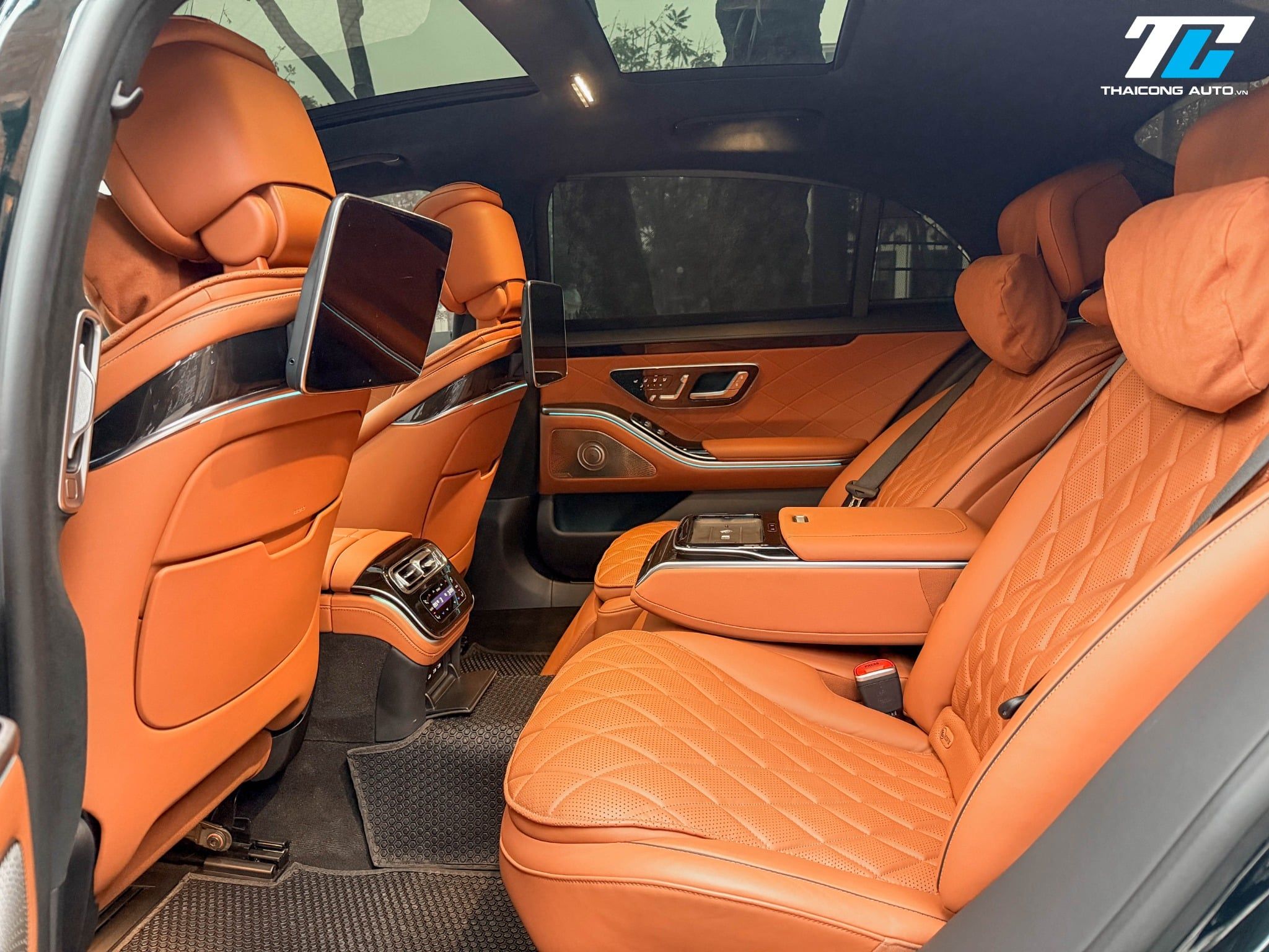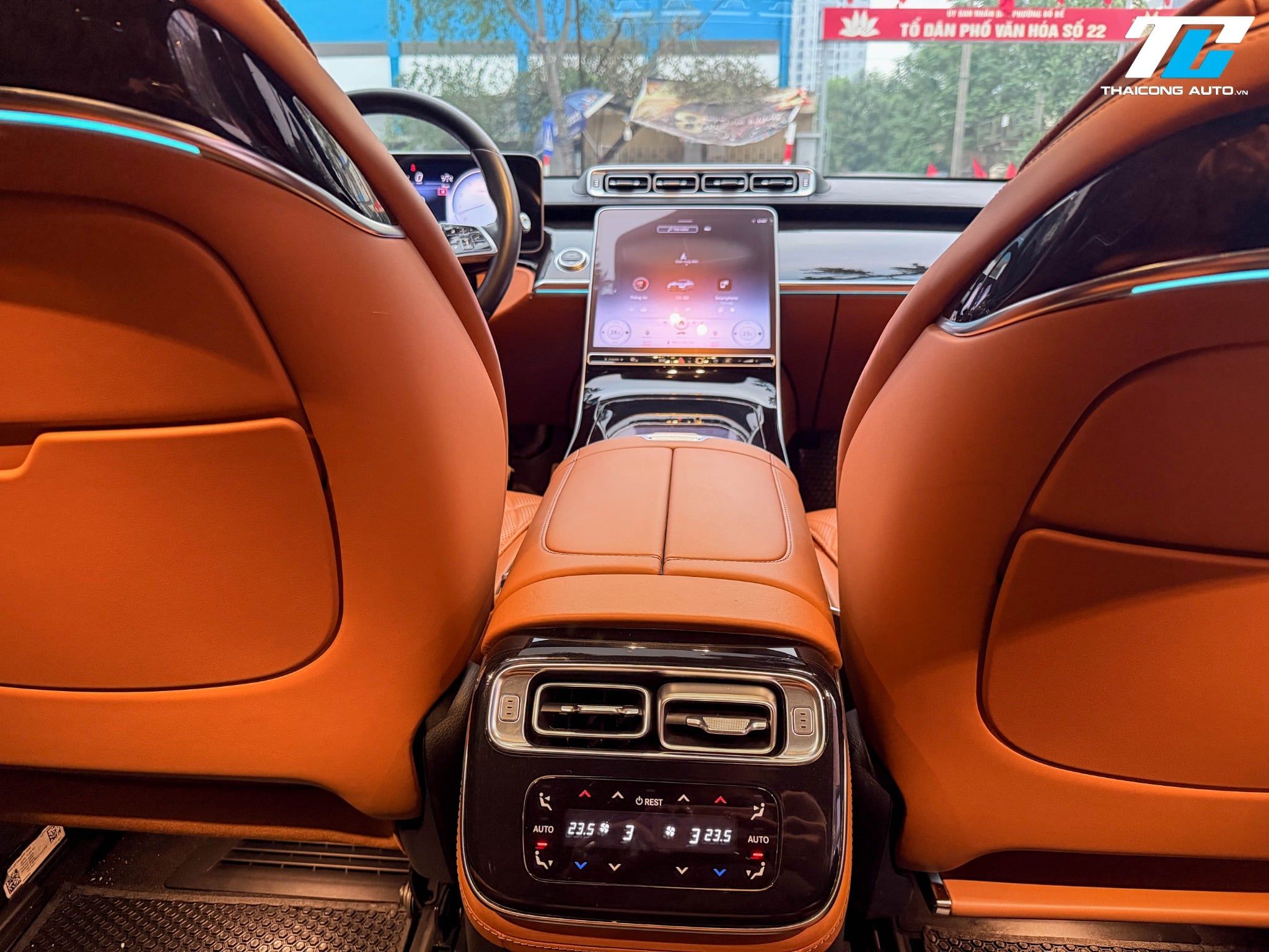 Hàng ghế sau của S450 Luxury 2023 được trang bị hai ghế độc lập với khả năng ngả lưng lên tới 43.5 độ. Điểm nhấn đặc biệt là tính năng massage túi khí đa điểm, tích hợp cả massage bắp chân và sưởi cổ/vai, giúp xua tan mọi mệt mỏi sau những giờ làm việc căng thẳng. Khách hàng phía sau còn được cung cấp hai màn hình giải trí 11.6 inch độ phân giải cao cùng một máy tính bảng điều khiển từ xa, cho phép can thiệp vào hầu hết các tính năng trên xe một cách chủ động.