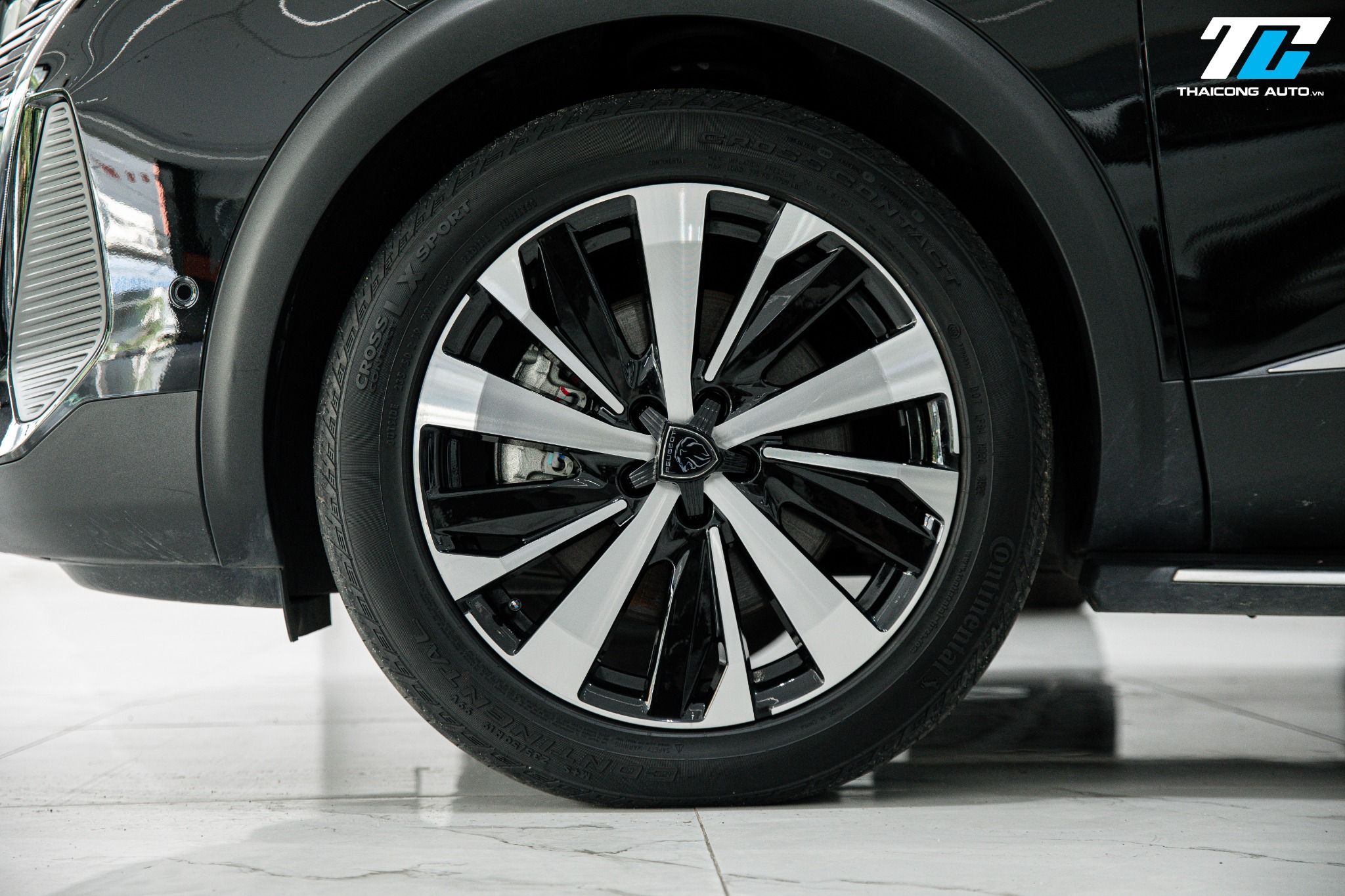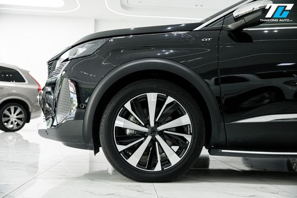 Thân xe Peugeot 5008 GT Line 2024 thể hiện sự năng động với các đường gân dập nổi mạnh mẽ, kết hợp cùng mâm xe hợp kim 19 inch kiểu New York cắt kim cương hai tông màu, tôn lên vẻ thể thao và sang trọng.
