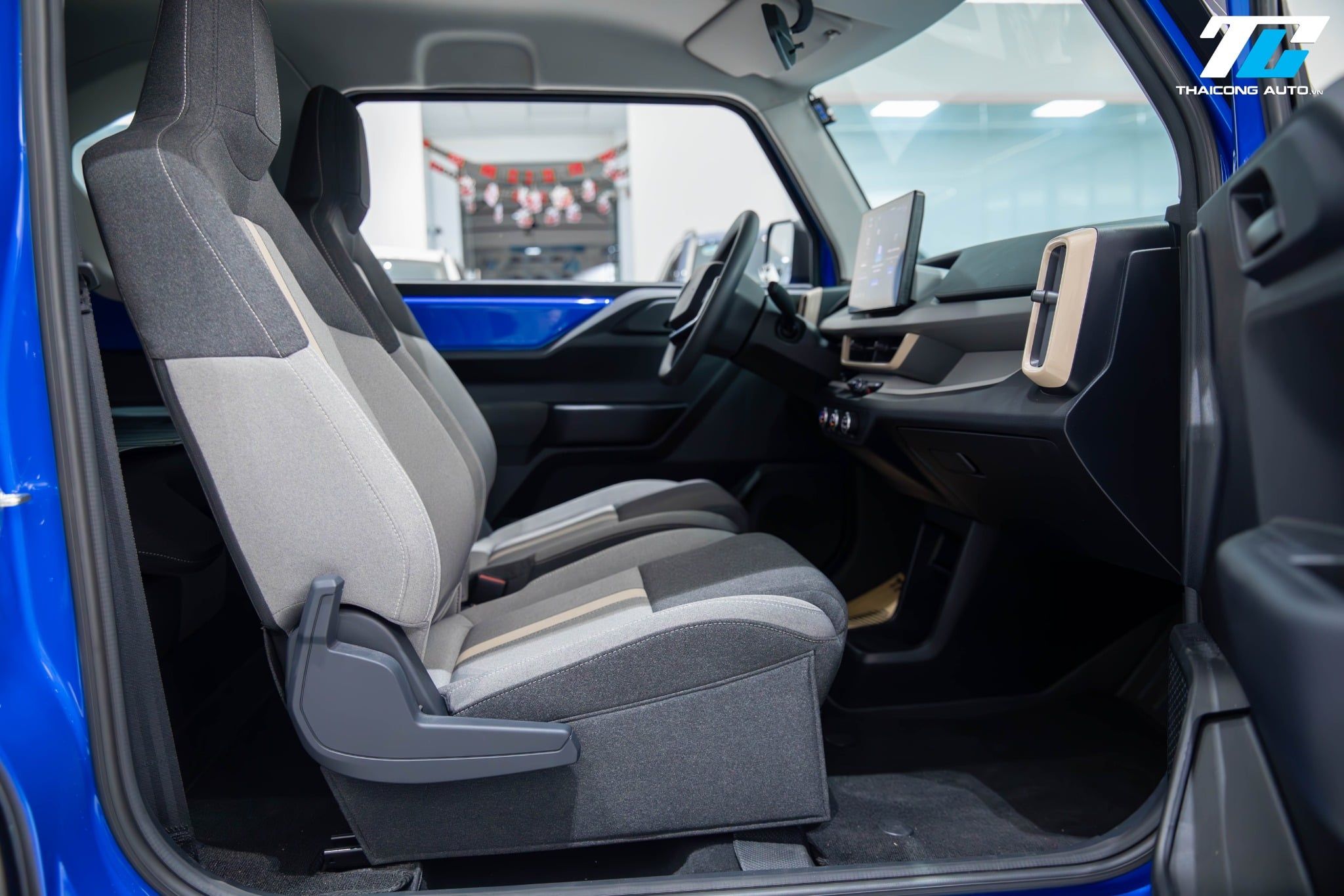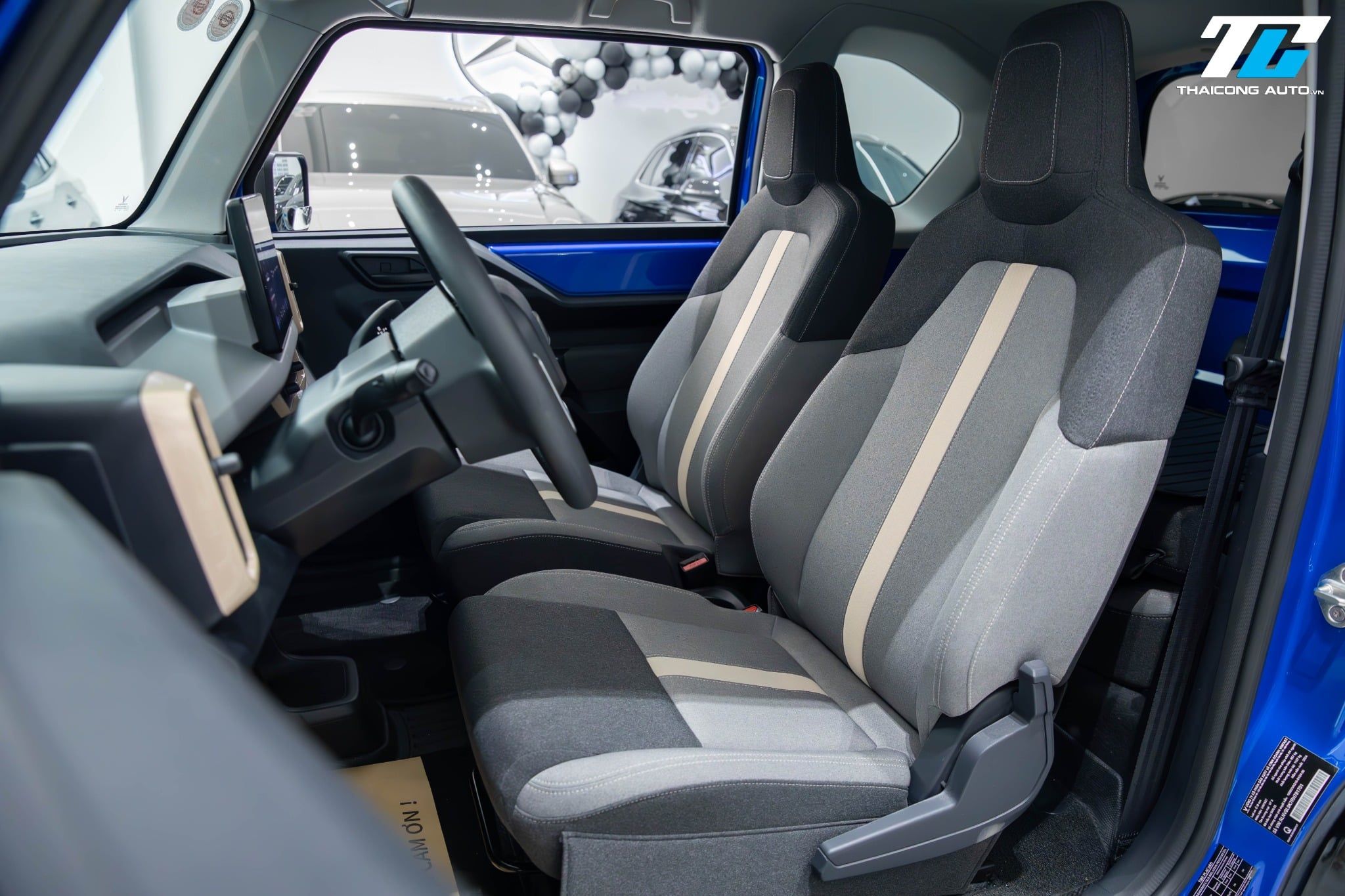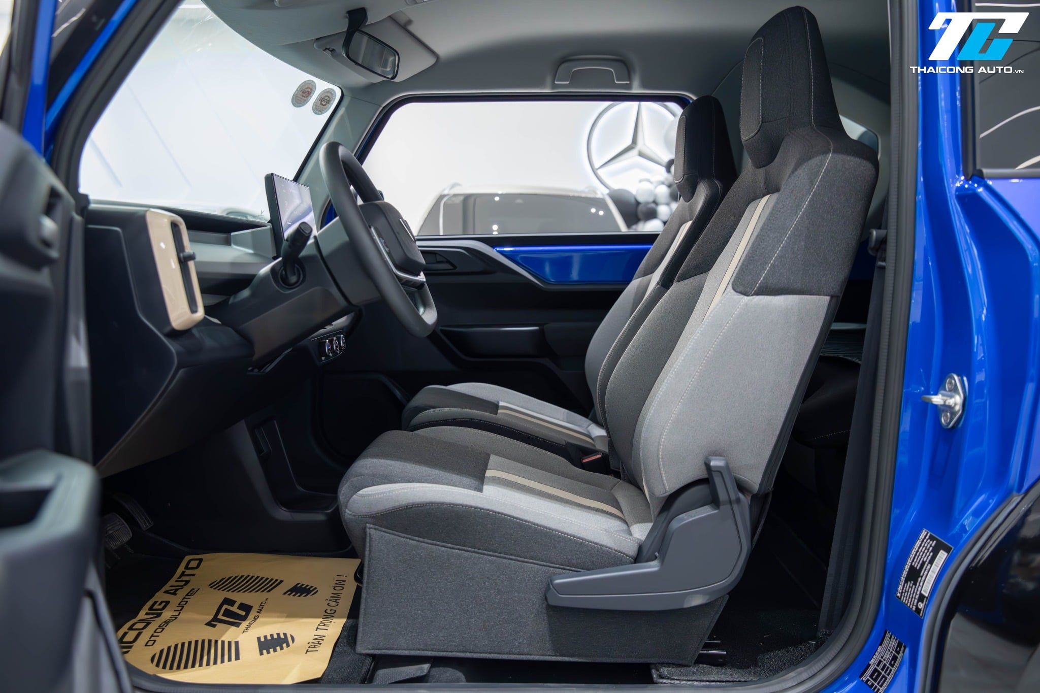 Xe được trang bị cấu hình 4 ghế ngồi bọc nỉ, trong đó hai ghế trước có thể chỉnh cơ 4 hướng và tích hợp tựa đầu, mang lại sự thoải mái cho người lái và hành khách. Hàng ghế sau có thể gập lại linh hoạt, giúp mở rộng không gian chứa đồ khi cần thiết.
