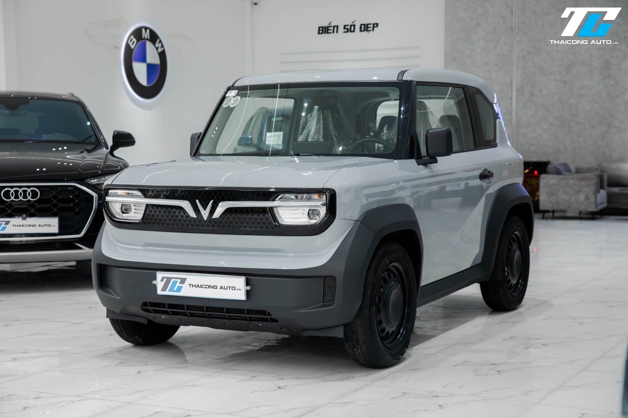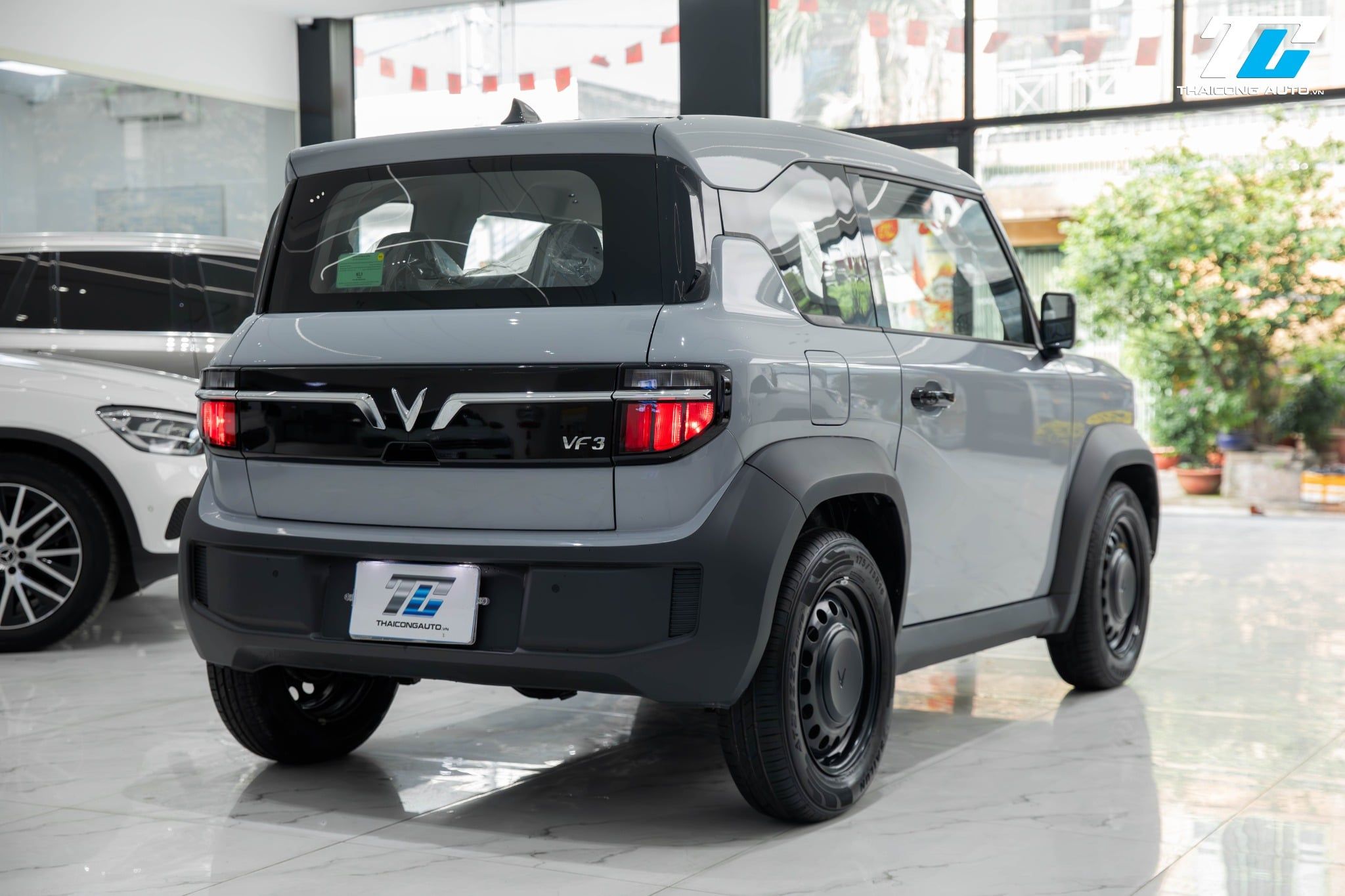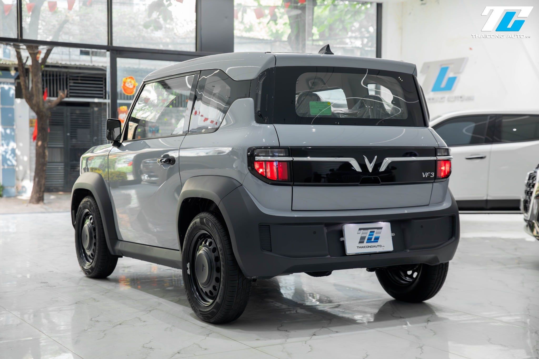 Màu xám làm nổi bật vẻ năng động, mang lại cảm giác tươi mới và độc đáo. Xe được trang bị đèn LED trước và sau, đi kèm lưới tản nhiệt khép kín đặc trưng của xe điện, mang đậm dấu ấn VinFast.