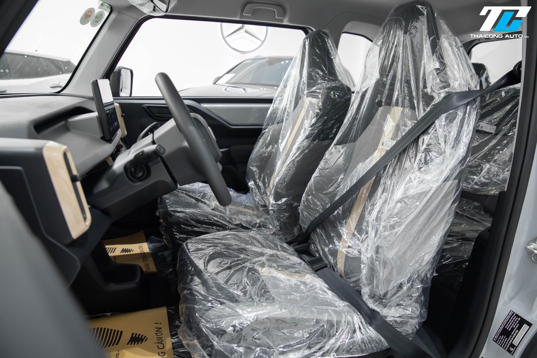 Xe được trang bị cấu hình 4 ghế ngồi bọc nỉ, trong đó hai ghế trước có thể chỉnh cơ 4 hướng và tích hợp tựa đầu, mang lại sự thoải mái cho người lái và hành khách. Hàng ghế sau có thể gập lại linh hoạt, giúp mở rộng không gian chứa đồ khi cần thiết.